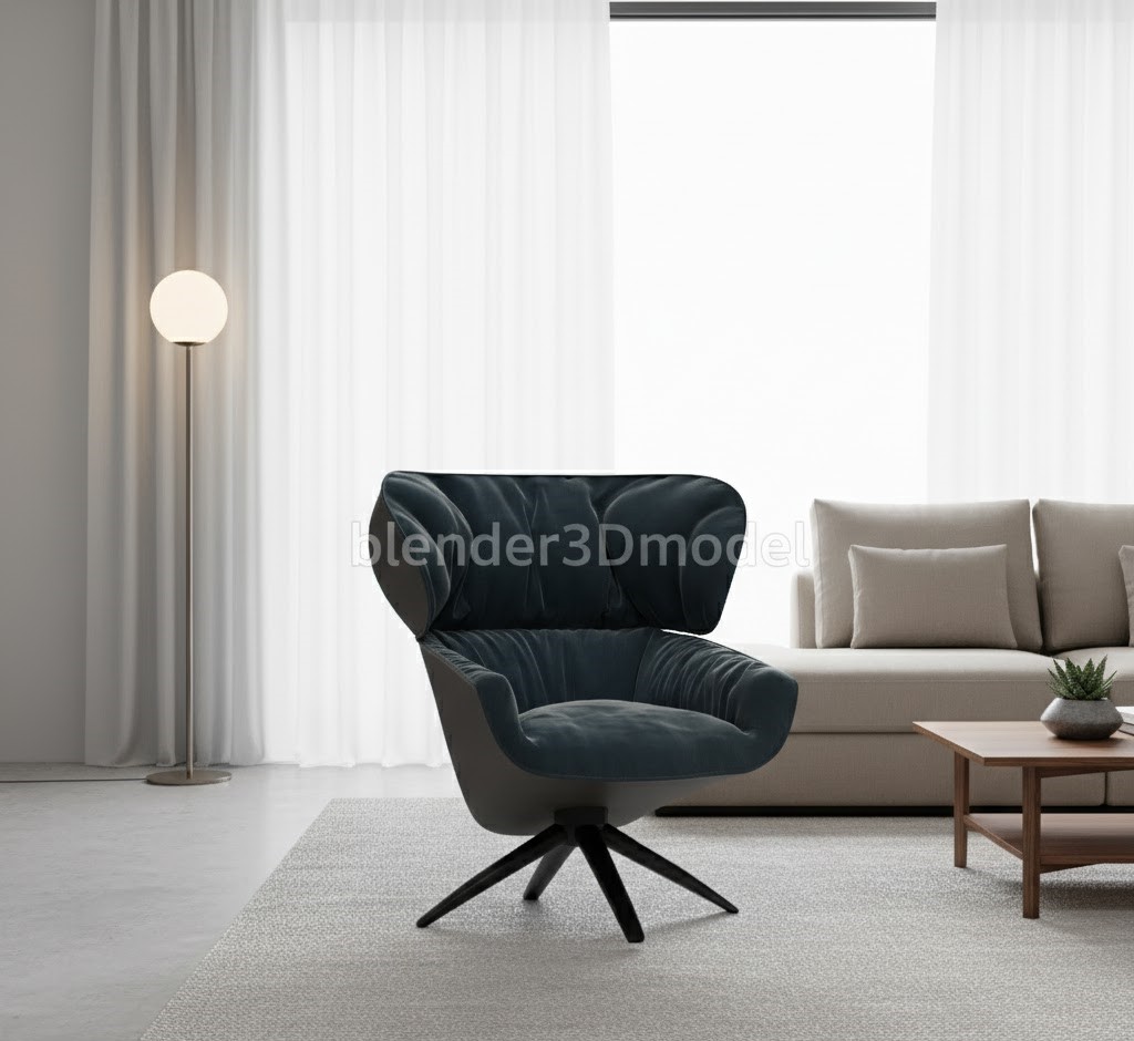 Chic Modern Curved Armchair with Pillow 3D Model (Blender/Cycles